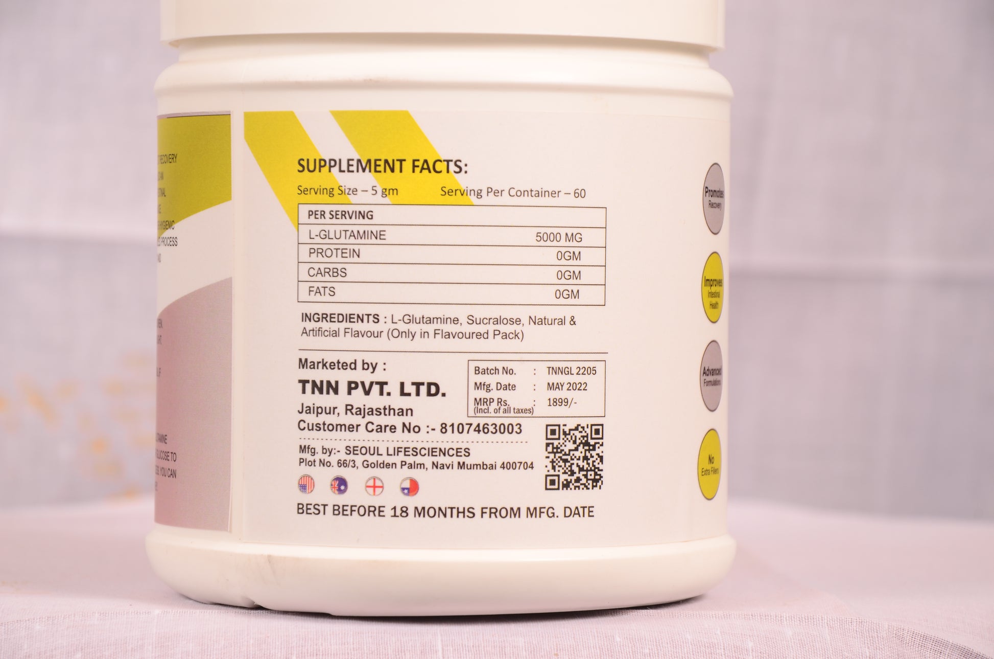 TNN GLUTAMINE IS PACKED UNDER HYGIENIC CONDITION & QUALITY CONTROLLED PROCESS TO ENSURE MAXIMUM POTENCY AND FLAVOURS.
